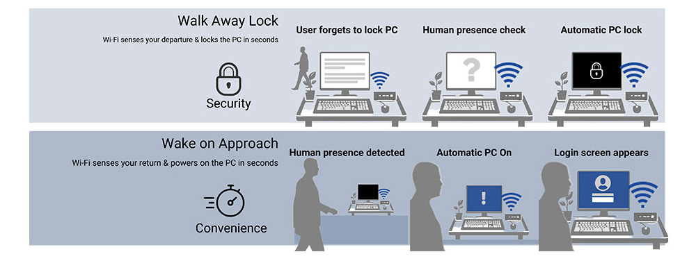 Integrated proximity-sensing technology detects the user’s presence, intelligently locking or waking NUC 15 Pro+ to reduce power consumption while maintaining responsiveness.