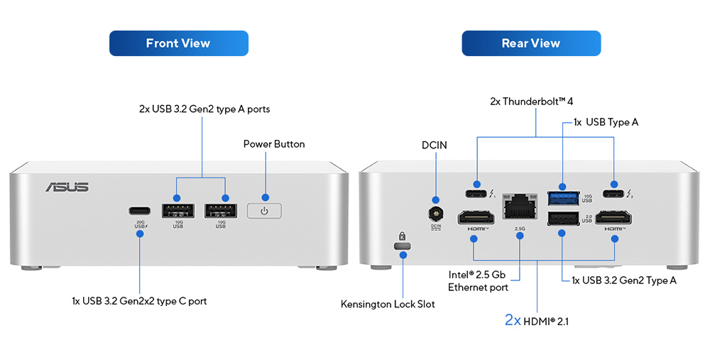 At just 112 x 144 x 42 mm, ASUS NUC 15 Pro+ boasts a refined and compact design with versatile connectivity.