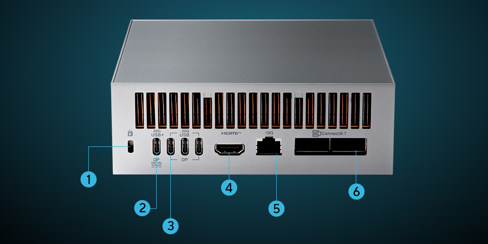 The ASUS Ascent GX10 integrates NVIDIA® ConnectX®-7 SmartNIC to deliver ultra-high-speed networking, enabling rapid data transfer and low-latency communication across distributed AI workloads.