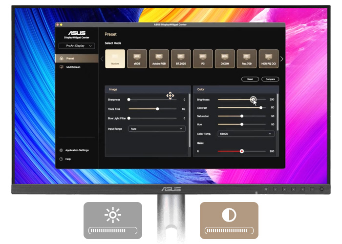 ASUS DisplayWidget Center is software that provides an intuitive interface to adjust monitor settings, including brightness, contrast, and color temperature. Whether a monitor is used for everyday viewing or for professional creative work, users can effortlessly find the optimal display settings for enhanced viewing experiences.