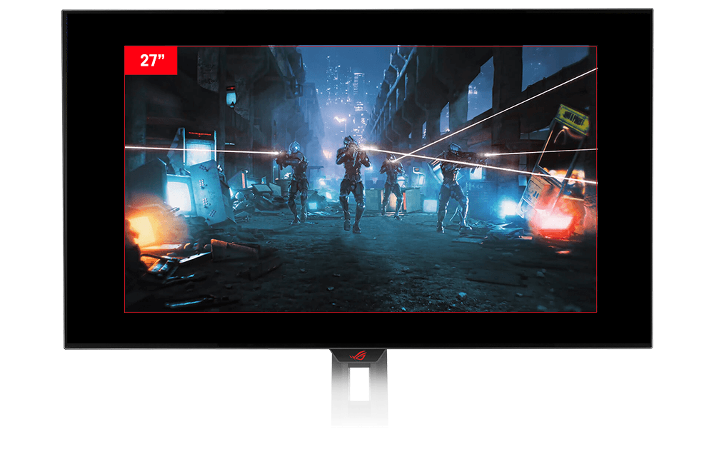 The extremely high contrast ratio offered by the OLED panel results in the deepest black hues and vivid colors. Plus, an astounding 0.03ms gray-to-gray response time ensures supersmooth, low-latency gameplay.