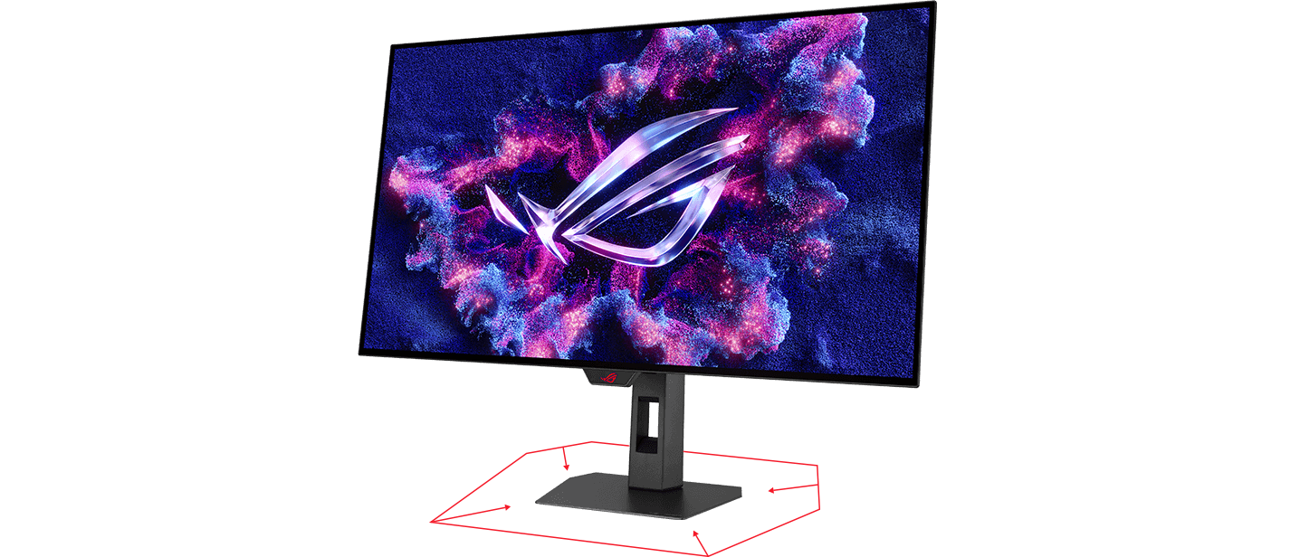 The new ROG Strix OLED series monitors feature a new compact stand that’s 45% smaller than those found on previous-generation XG monitors, freeing up valuable desk space for a keyboard and mouse. The stand offers tilt, swivel, and height adjustments for the ideal viewing position. The display is also VESA wall-mount-compatible.