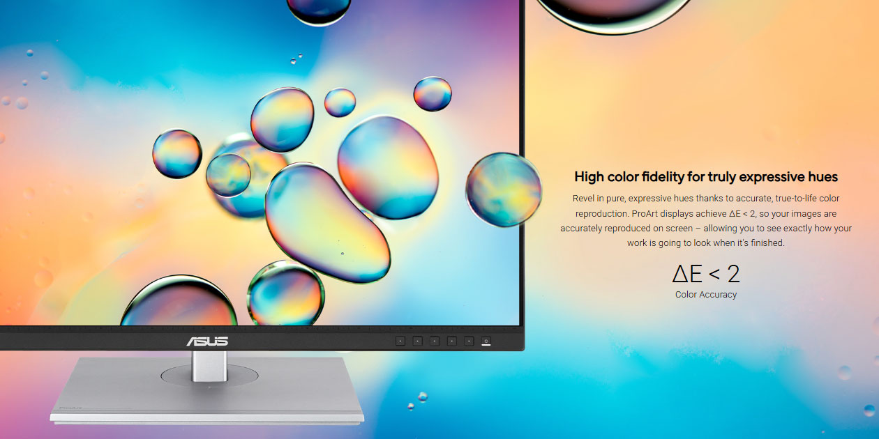 Where the PA247CV really stands out is color. ASUS specifies 100% sRGB and 100% Rec. 709 coverage, which makes it very suitable for web content, YouTube production, digital design, and general video work. ASUS also states the panel is factory calibrated and Calman Verified with Delta E below 2, which is exactly the kind of specification professionals look for when they need confidence in out-of-box accuracy. In practical terms, that means the monitor is designed to show colors very close to their intended values, reducing guesswork during editing and review.