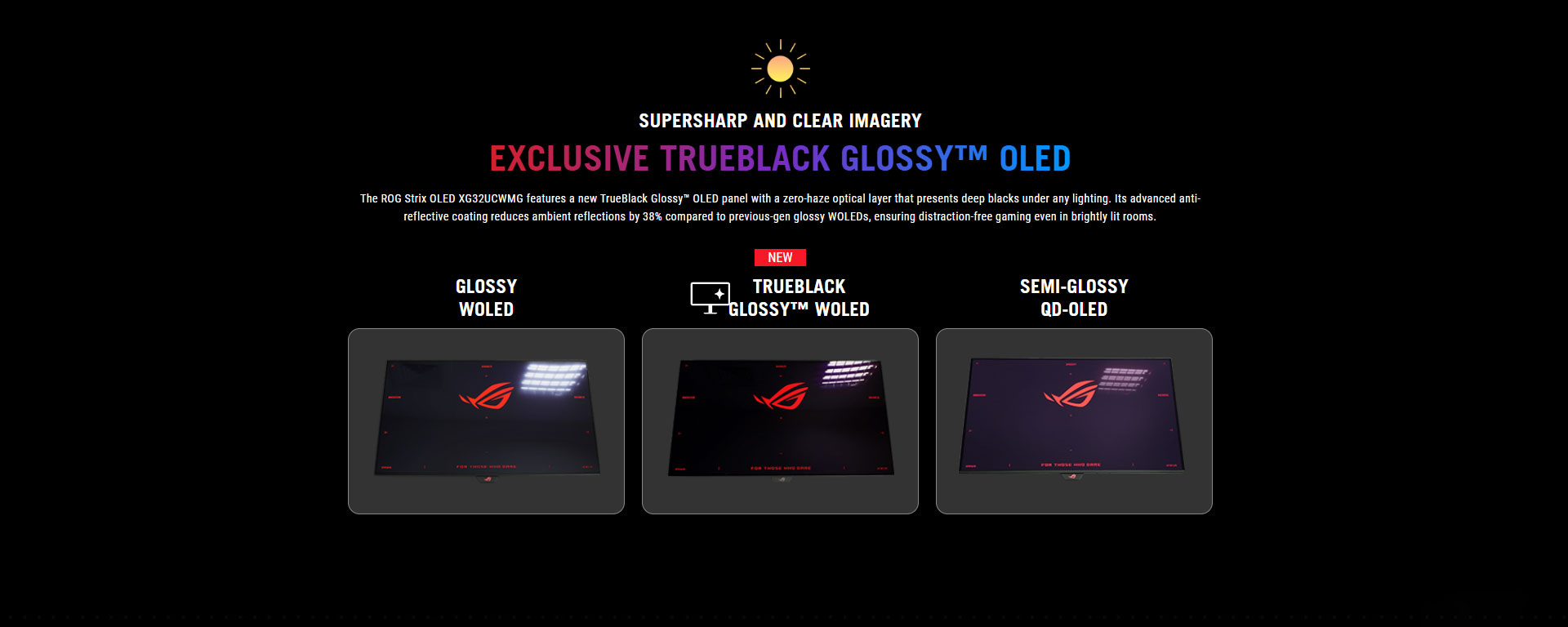 ASUS’ TrueBlack Glossy film + zero-haze layer is about perceived clarity—high contrast edges look cleaner, and dark-scene depth pops in a way matte OLED coatings often soften. That “glass-like” look is a big part of the appeal.