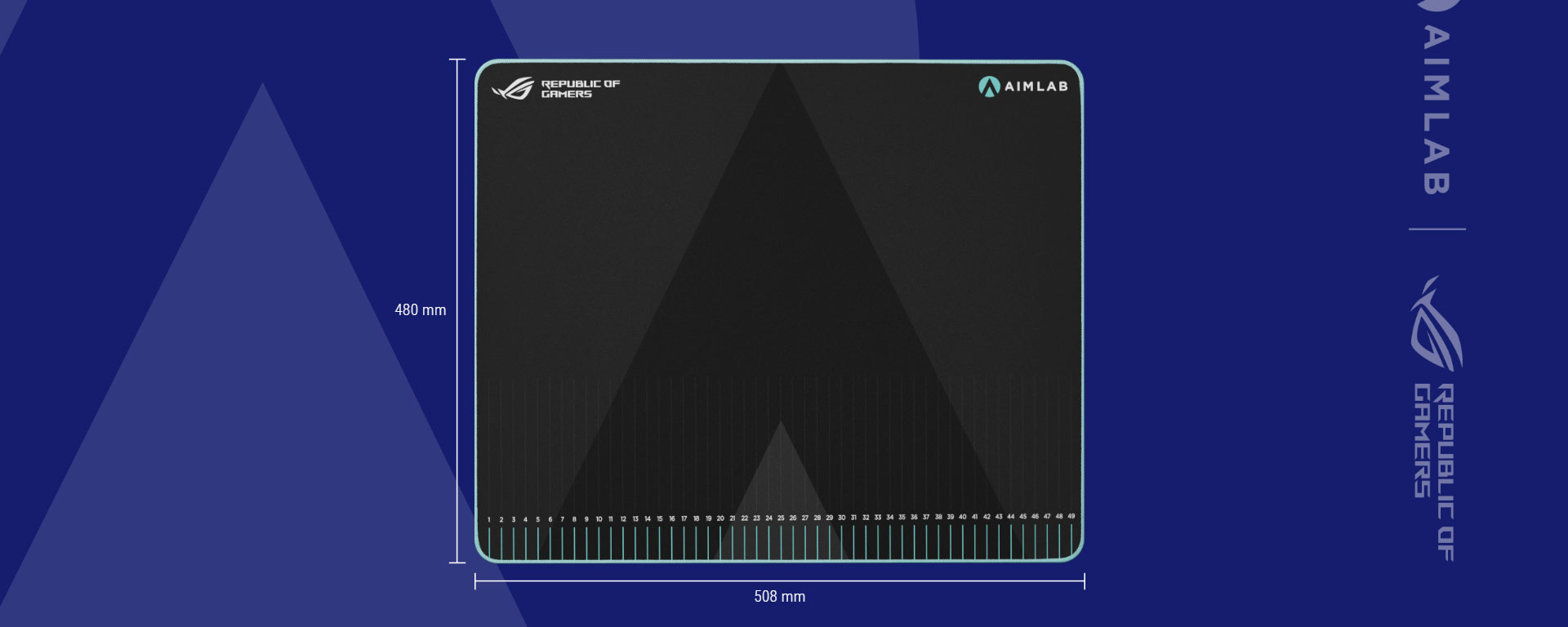 It adds training-oriented measurement markings and is designed to pair with Aim Lab X ROG 360 tasks so you can track and repeat aim movements more consistently (flick distance, reset distance, 180° turns, etc.).
